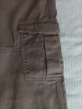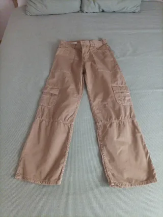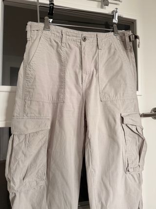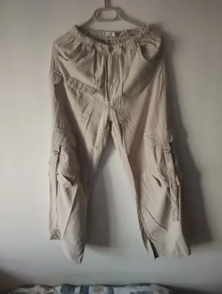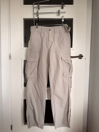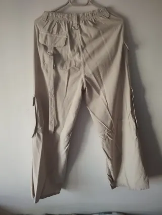 Pantalones de estilo cargo en color beige. Cuentan con múltiples bolsillos y un diseño funcional. - Bolsillos frontales. - Bolsillos laterales tipo cargo. - Cintura con trabillas para cinturón.