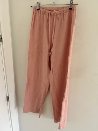 Pantalones Pull&Bear Lino Rosa Talla XS