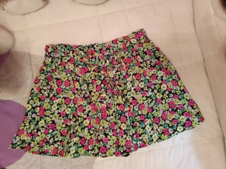 Falda pantalón corta de Zara con estampado floral. - Cintura elástica. - Bajo con volante. - NUEVA