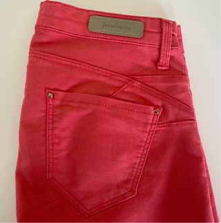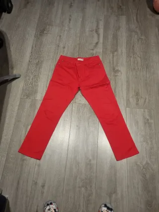 Pantalón de la marca Stradivarius en talla 38. - Color rojo vibrante. - Diseño moderno y favorecedor. - Tejido cómodo y de calidad.