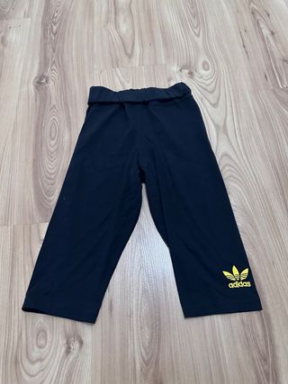 Pantalón corto deportivo de Adidas para mujer. - Diseño capri. - Logo de Adidas en color dorado en la parte inferior de la pierna.