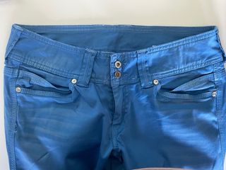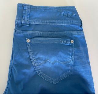 Pantalones vaqueros de la marca Pepe Jeans en un llamativo color azul turquesa. - Diseño con bolsillos traseros. - Detalle de costuras. - Logo de la marca bordado. 95 cm largo. 19 cm ancho de pata. 40 cm aprox cintura.