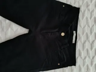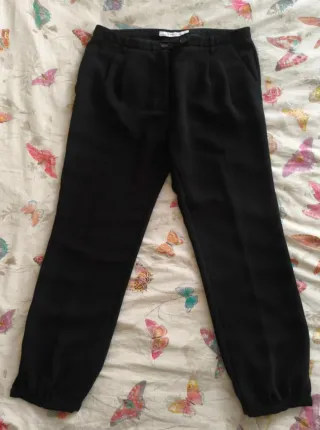 Pantalón de tela de vestir fino, color negro. Botones en tobillos. Muy poco uso. En perfecto estado.