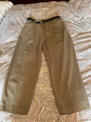 Pantalón de vestir con pinzas, talla M. Ideal para cualquier ocasión. - Diseño clásico con pinzas. - Tejido de cuadros discreto.