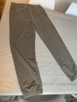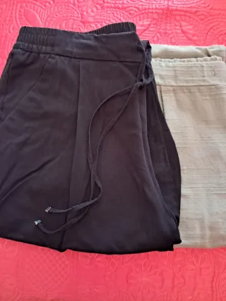 Pantalones cómodos de tela con goma en la cintura. El negro de Mango talla L. Tela de mucha caida El verde de YNS talla L Algodón 100 x 100. 5 EUROS LOS 2 PANTALONES