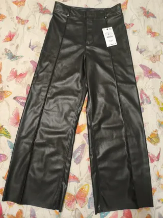 Pantalón de efecto piel de Zara. De pierna ancha. Nunca ausados. Con etiqueta.