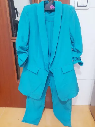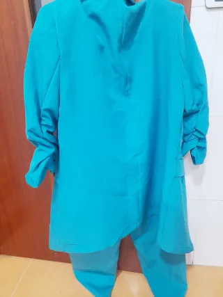 Conjunto de blazer y pantalón con un diseño moderno. Nuevo porque me queda un poco grande (uso talla XS y es S). Necesita planchar - Blazer con mangas abullonadas.