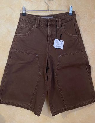 Pantalones cortos de corte ancho en color marrón. - Diseño tipo baggy. - Bolsillos frontales. - Trabillas para cinturón.