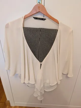 Conjunto de dos piezas de Zara. - Camisa de zara blanca con volantes. - Pantalón de estampado pata de gallo de H & M