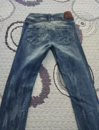 Pantalón vaquero de corte moderno con un estilo desgastado. - Diseño con rotos y efecto desgastado. - Cierre de cremallera y botón. - Bolsillos delanteros y traseros.