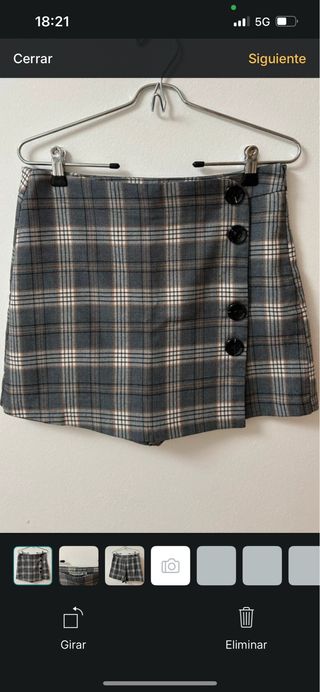 Falda pantalón de Stradivarius con un diseño a cuadros. - Estampado de cuadros grises y multicolor. - Cierre lateral con botones. - Diseño tipo falda pantalón.