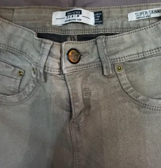 Pantalones vaqueros de corte moderno. - Super Skinny. - Diseño desgastado. - Cierre de botones.
