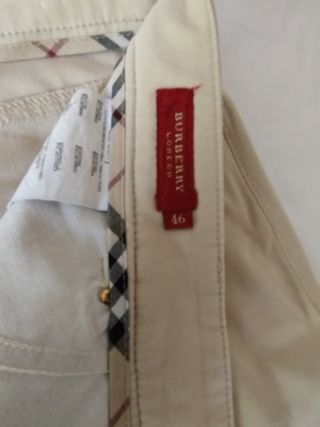 Pantalón largo Burberry para mujer, color beige y talla 46. Es un pantalón de apariencia impecable, ideal para la primavera-verano. - Corte recto. - Cierre con cremallera y botón. - Tejido ligero.