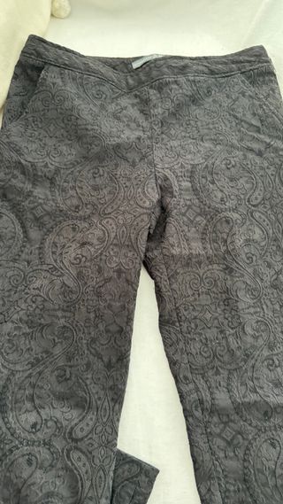 Pantalón de la marca Body Sculpt. Talle M / 40. Tambien sirve para un talle S ( dado que la tela se amolda al cuerpo ) - Diseño estampado tipo patchwork de denim. - Corte ajustado en cintura , un poco ancho y termina mas achupinado. - Cintura alta. - Tiene un ligero brillo que lo hace elegante y versatil para cualquier ocasion - Tela super liviana y fresca para la primavera / Verano