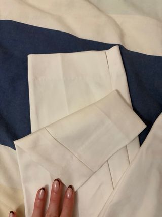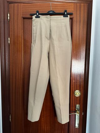 Pantalón de vestir de la marca Zara en color beige. Diseño elegante y moderno. - Cintura alta. - Bolsillos laterales. - Pierna recta.