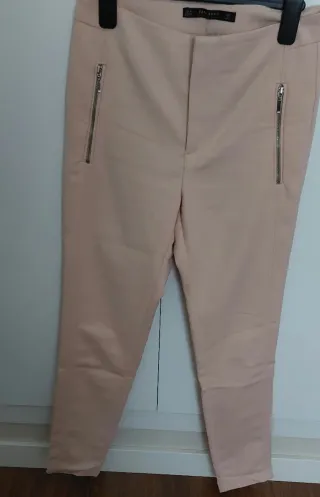 Pantalón Zara Rosa con Cremalleras