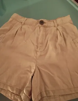 Pantalón corto de Lefties en color beige. - Diseño con pinzas en la parte delantera. - Cintura con trabillas. - Cierre de botón y cremallera. - Bolsillos laterales.