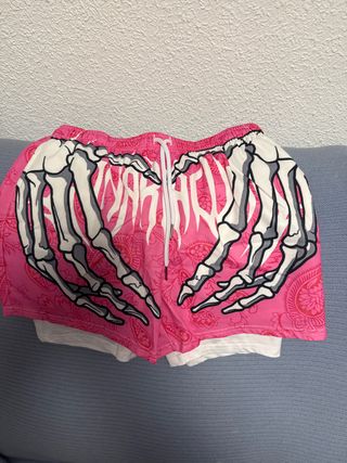 Pantalones cortos rosas con esqueleto