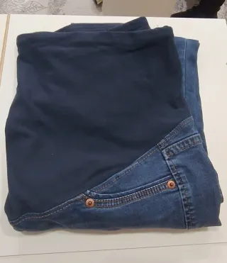 Pantalón de maternidad con panel superior de tela suave. - Panel superior de tela elástica. - Diseño tipo jeans. talla 42