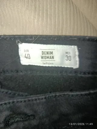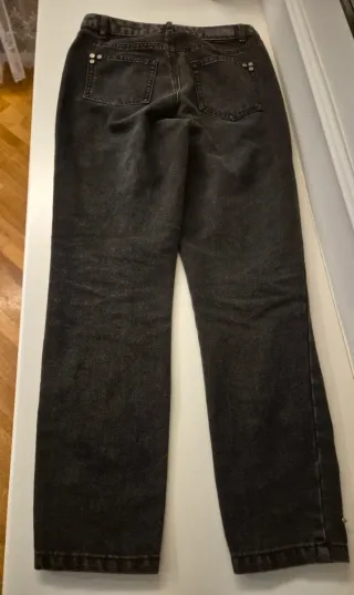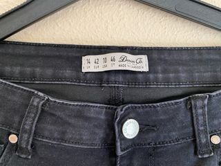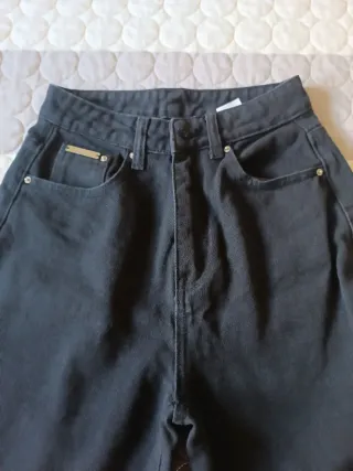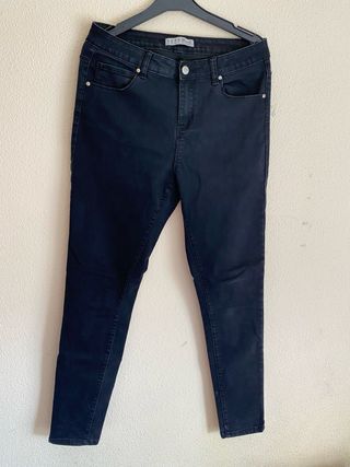 Pantalones vaqueros, color negro. - Cierre con cremallera y botón. - Bolsillos delanteros y traseros. En buen estado