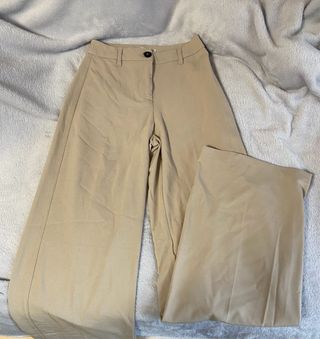Pantalón de vestir de Stradivarius en color beige y talla 36. Un básico elegante para cualquier ocasión. - Corte ancho y fluido. - Detalle de pinzas delanteras. - Bolsillos laterales.