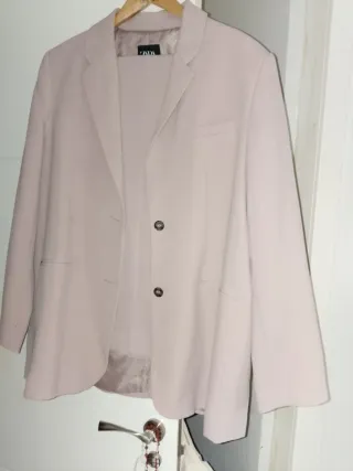 Elegante traje de chaqueta de la marca ZARA en color rosa. - Chaqueta con solapas clásicas. - Cierre de dos botones. - Bolsillos frontales. - Forro interior satinado.