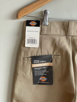 Pantalones Dickies modelo Double Knee (con el refuerzo en la rodilla). Están totalmente NUEVOS a estrenar, conservan todas las etiquetas originales. Son el corte "Loose Fit / Straight Leg", quedan anchos y rectos, con esa caída encima de la zapatilla que se busca ahora rollo skater/workwear. Color beige (Khaki) clásico. La talla es W28 L30. ⚠️ OJO TALLA: Al ser cintura 28, equivalen más o menos a una 36-38 de mujer o una S de hombre. Perfectos para estilo unisex. Precio en tienda: +70€. Si necesitáis medidas exactas de cintura o largo, escribidme y os las paso sin problema. 📦 Envío rápido y bien protegido. #dickies #doubleknee #workw