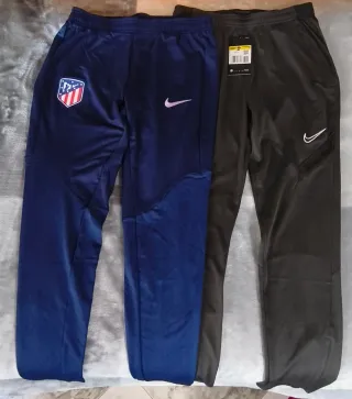Pack de 2 pantalones largos oficiales del Atlético de Madrid talla S mujer. Incluye: - Pantalón academia gris: nuevo con etiqueta. - Pantalón cantera: oficial del primer equipo, con escudo, en bolsa sellada (sin etiqueta), perfecto para coleccionista. Cómodos, transpirables y fáciles de lavar y secar. Ideales para entrenamiento o uso diario. Se venden en pack o por separado. Precio negociable (se responde rápido ante cualquier cuestión).