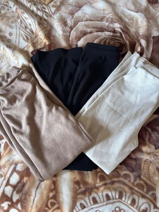Conjunto de tres pantalones. NO SON DE LA MISMA TALLA: Si te llevas los tres por 30€, sino cada uni por 13€ - Pantalón de color beige talla S - Pantalón de color negro talla M - Pantalón de color crudo talla S