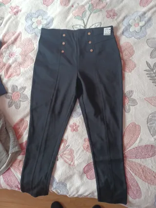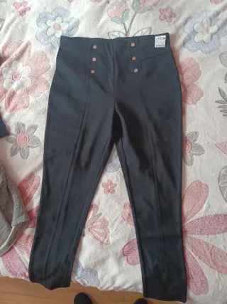 Pantalón de lycra de talle alto con detalle de botones dorados. - Diseño de talle alto. - Cierre con botones decorativos en la parte delantera. - Tejido elástico para mayor comodidad.