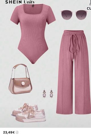 Conjunto body y pantalón rosa