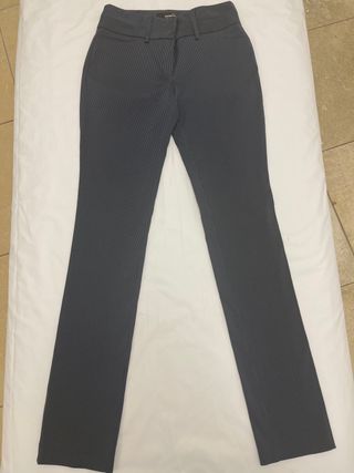 Pantalón de vestir de la marca Mango en color gris. Diseño elegante y moderno. - Corte recto. - Tejido con textura sutil. - Cierre de cremallera y botón. Talla 34