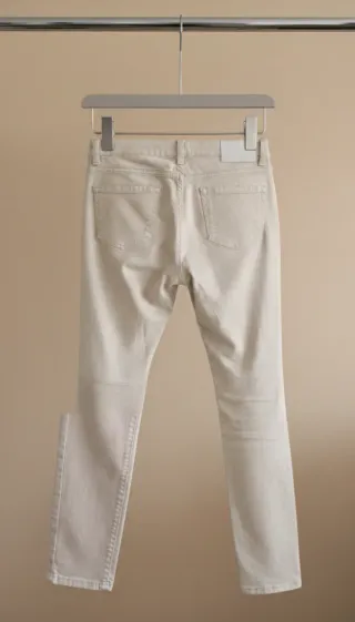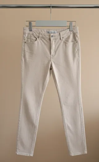 Pantalón beige de Stradivarius – Premium Collection, talla 40. Modelo tipo chino, muy elegante y fácil de combinar para looks casual, oficina o estilo minimal / old money. ✔ Colección Premium (mejor calidad de tejido y acabados) ✔ Color beige / arena muy combinable ✔ Corte favorecedor ✔ Cierre con cremallera y botón metálico Estado: Buen estado general. Tiene el bajo descosido (ver foto), algo muy fácil de arreglar con una pequeña costura o en cualquier modista. 📏 Talla: 40 🎨 Color: Beige / arena 🏷 Marca: Stradivarius Premium Collection 💡 Ideal para quien busca un pantalón elegante de buena calidad a precio reducido.Precioajust