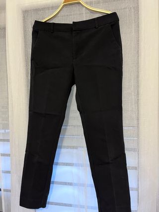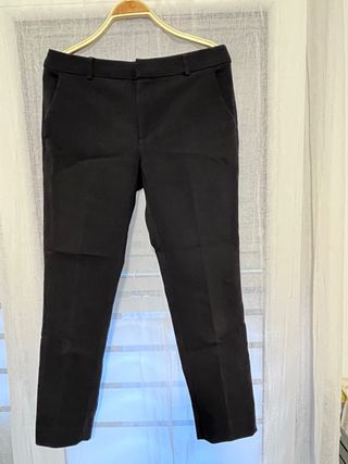 Pantalón de vestir negro con corte ancho. Cierre de cremallera lateral. Medidas en la última foto. Las fotos tienen un efecto extraño pero es cosa de la luz, el pantalón está bien. - Diseño elegante y moderno. - Tejido de calidad.