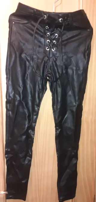 Pantalón de Bershka para mujer. - Diseño con cordones en la parte delantera. - Material efecto piel,poli piel elástica. - Corte ajustado.