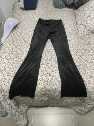 Pantalón de fiesta con un toque brillante y corte campana. - Tejido aterciopelado. - Diseño acampanado en las piernas.
