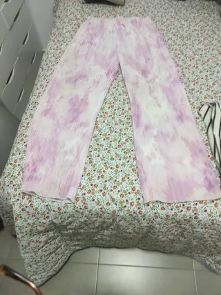 Pantalón Plisado Tie-Dye Rosa y Blanco