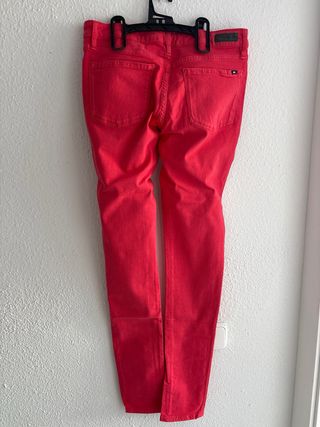 Pantalón de corte ajustado en un vibrante color rojo. - Diseño de cinco bolsillos. - Cierre de cremallera y botón. - Etiqueta de la marca en el bolsillo trasero.