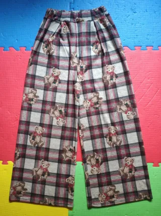 Pantalones anchos con un divertido estampado de ositos y cuadros. - Diseño de cuadros en tonos rojos y grises. - Estampado de ositos con bufanda. - Piernas anchas y fluidas.