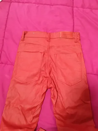 Pantalón de polipiel en color burdeos. Está forradito Talla M pero tallan pequeños, como una s - Material: Polipiel. - Corte ajustado.