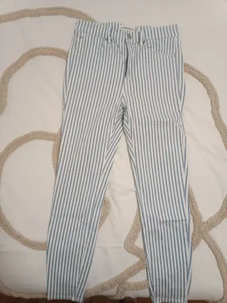 Pantalón de Stradivarius con un diseño de rayas verticales. - Diseño de rayas azules y blancas. - Talla m (38). - Corte moderno.