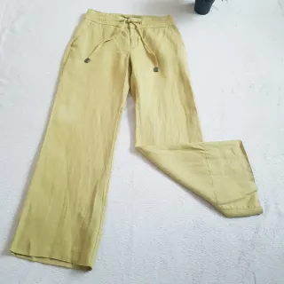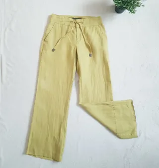 Pantalón de tejido 100% en lino, color verde oliva o pistacho. Bolsillos laterales delanteros, pernera recta y ancha. Cierre con dos enganches metálicos y cordón acabado en aplique metálico. Pespuntes en cintura y bolsillos El bajo esta agrega y mide exactamente 95 cm. Usados en 2 ocasiones, como nuevo #mujer #mujer36 #talla36 #basic #Mymujer #femme #zara #femme36 #mujerS #mujer36 #actual #temporada #prs36 #pantalon #pantalonlino #wideleg #widelegrecto #lino #zarawoman