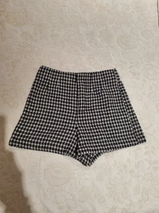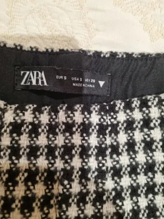 Pantalón de la marca Zara con un diseño clásico. - Estampado de pata de gallo en blanco y negro. - Talla S (equivalente a 36 europea y 26 mexicana). - Fabricado en China.