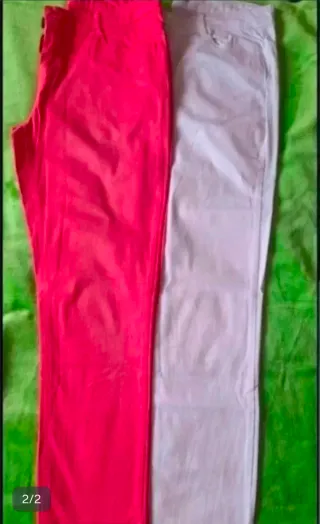 Pantalones de mujer en tonos salmón y blanco. Son dos pantalones, uno de cada color. Están en buen estado, muy poco usados.. - Tallas: 40 - Tejido: suave y ligero - No se venden por separado.