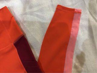 Conjunto deportivo Fabletics naranja y rosa