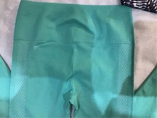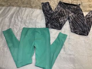 Dos leggings por el precio de uno. El estampado es de la marca H&M, talla S, en perfecto estado, y el verde agua es de Fabletics, nuevo sin etiquetas, talla XS.