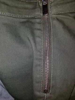 Pantalón pitillo elástico de color verde con detalle de cremallera lateral. - Tejido elástico para mayor comodidad. - Cremallera lateral para un ajuste moderno.