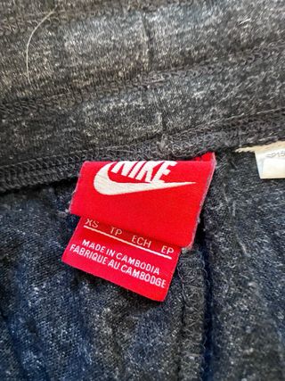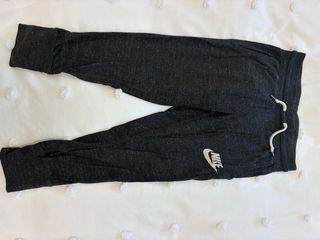 Pantalones pirata de la marca Nike en color gris oscuro jaspeado . Son cómodos y versátiles. - Tejido suave y ligero. - Cintura elástica con cordón. - Logo de Nike en la pierna.