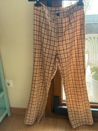 Pantalón de cuadritos nuevo y camiseta estrenada.