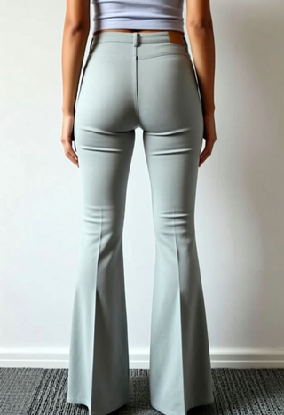Pantalones de corte acampanado, perfectos para la temporada de verano. Su diseño favorece la silueta y aporta un toque retro. - Tejido ligero y transpirable. - Cintura alta. - Cierre de cremallera y botón. - El color del pantalon es un gris muy clarito